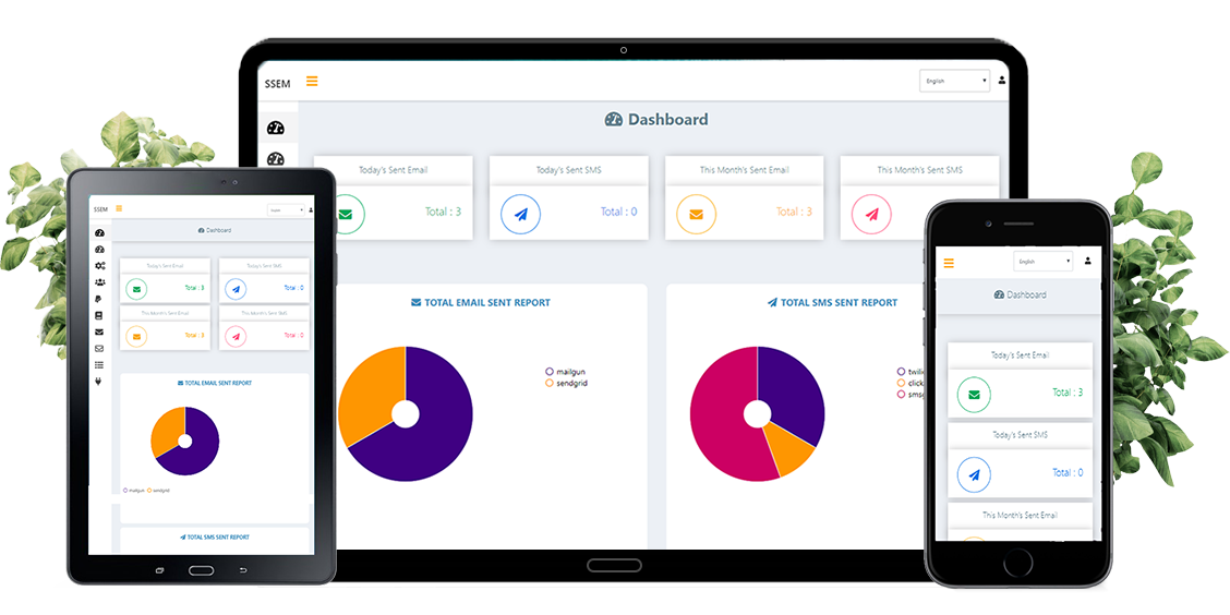 SSEM has built-in support for world’s most popular SMS & Email gateways like Plivo, Twilio, Clickatell, Nexmo, Mandrill, Sendgrid, Mailgun etc.